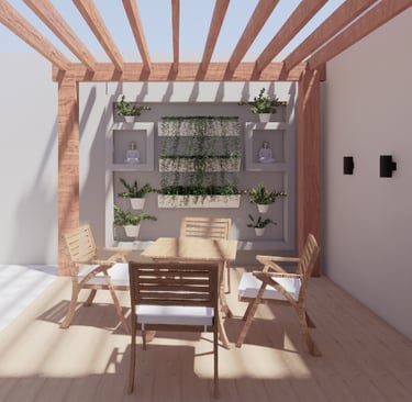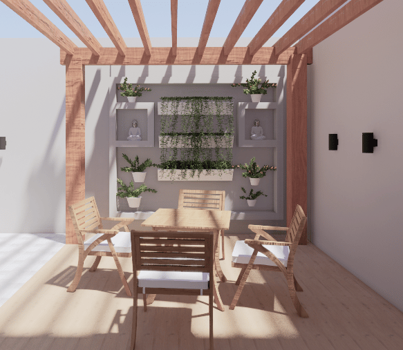 Espaço de contemplação com jardim vertical, trazendo a natureza para dentro de casa.